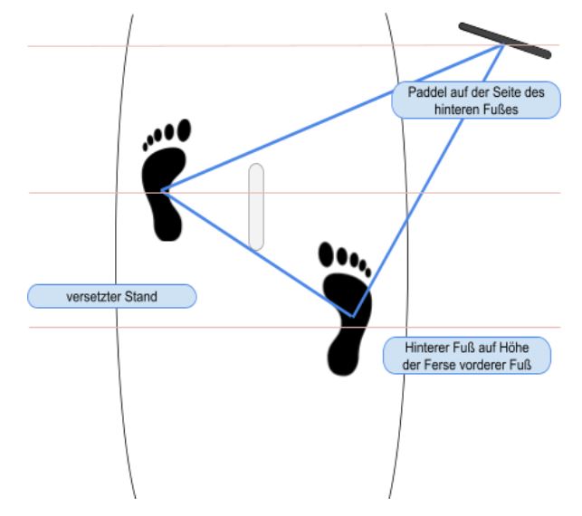 - Das Paddel ist auf der Seite des hinteren Fußes (Stabilitätsdreieck).