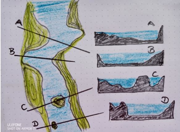 Aufgrund der geologischen Bedingungen, der Wassermenge und der physikalischen Gesetzmäßigkeiten, denen das Wasser unterliegt, können recht verschiedenartige Ufer- und Flussbett Formationen entstehen, die ihrerseits wiederum die Strömungsformen beeinflussen.