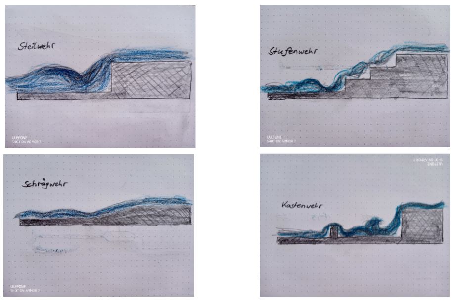 Steilwehr, Stufenwehr, Schrägwehr, Kastenwehr